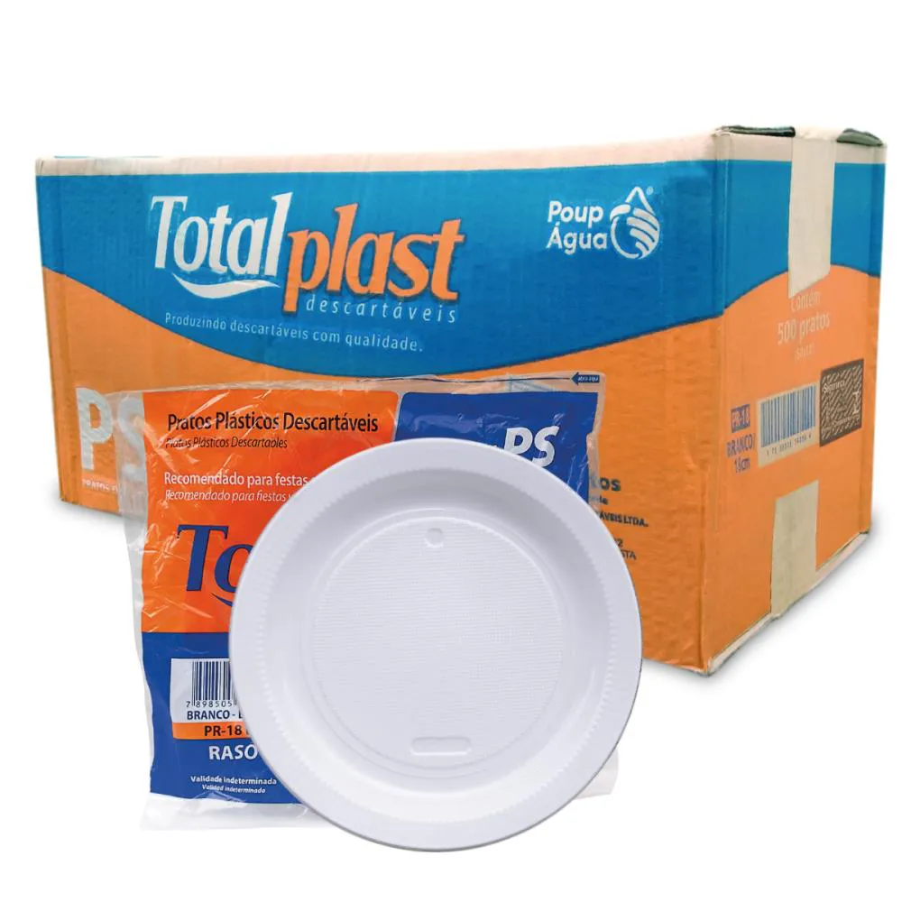 PRATO RASO GRANDE PLASTICO DESCARTAVEL TOTAL PLAST PR-18 BR PCT C/ 10 UND 17,8 cmR$ 3,00