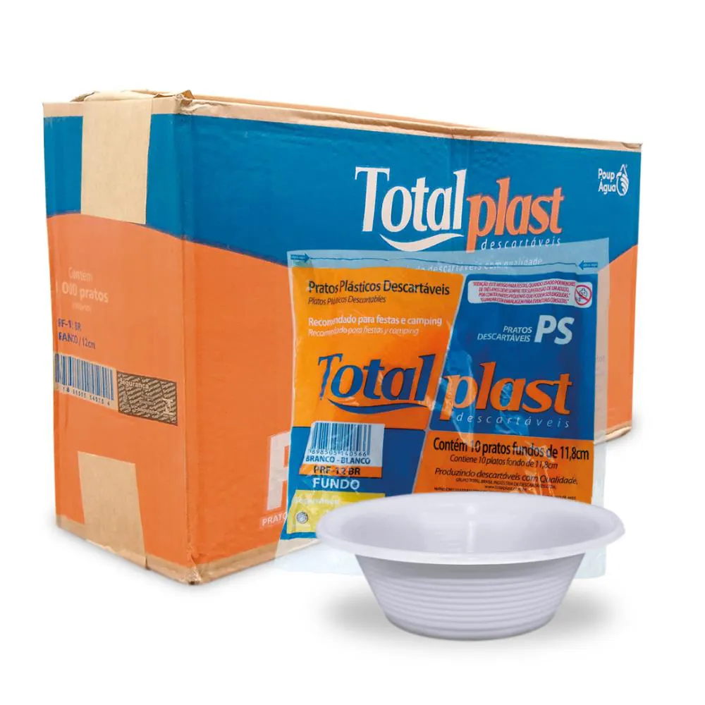 PRATO FUNDO PEQUENO PLASTICO DESCARTAVEL TOTAL PLAST PRF-12 BR PCT C/ 10 UND 11,8cmR$ 1,50