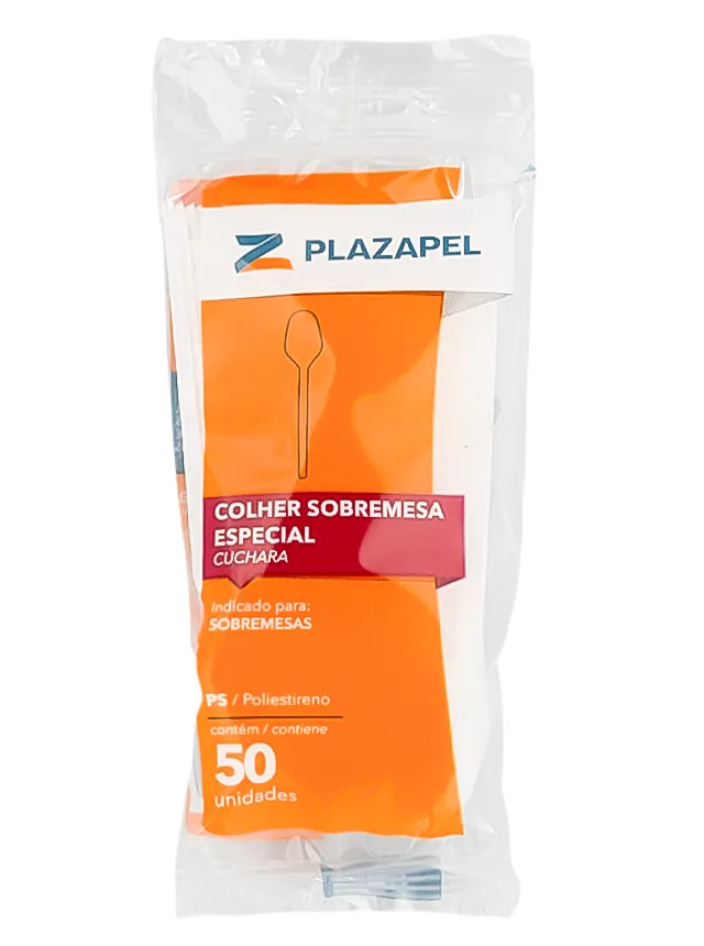 COLHER PLAZAPEL DESCARTAVEL SOBREMESA ESPECIAL PCT C/ 50 UND PSR$ 3,50