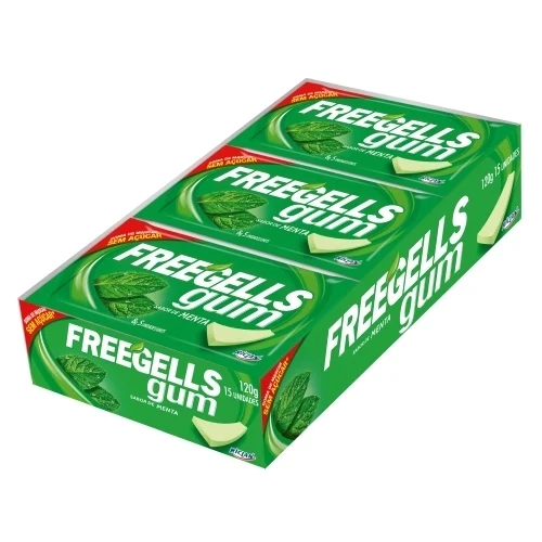 CHICLETE FREEGELLS 120G SABOR ARTIFICIAL DE MENTAPRODUTO SOMENTE CAIXA FECHADA | CAIXA DE 120 G COM 15 UNIDADE DE CHICLETE 8 GR$ 20,00