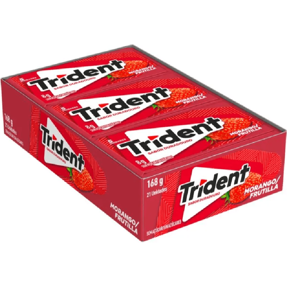 CHICLETE TRIDENTE SEM AÇUCAR 168 G SABOR MORANGO/FRUTILLAPRODUTO SOMENTE CIAXA FECHADA | CAIXA DE 168 G COM 21 DE CHICLETE 8 GR$ 33,00